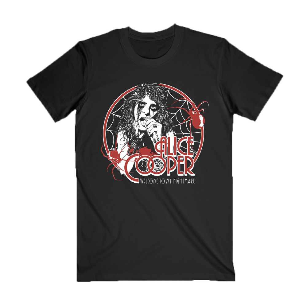 Get ready to embrace the creepy, crawly chaos of Alice Cooper’s legendary Welcome to My Nightmare album with this limited-edition Welcome To My Nightmare 50th anniversary Spider Swarm tee. This tee brings the album’s sinister side to life on all 8 legs. Dare to wear it!